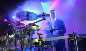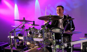 wenn er die ganz Großen des Schlagzeugspiels (Terry Bozzio, Gregg Bissonette, Pete York, Rene Creemers etc.) zur Drum-Clinic einlädt
